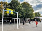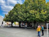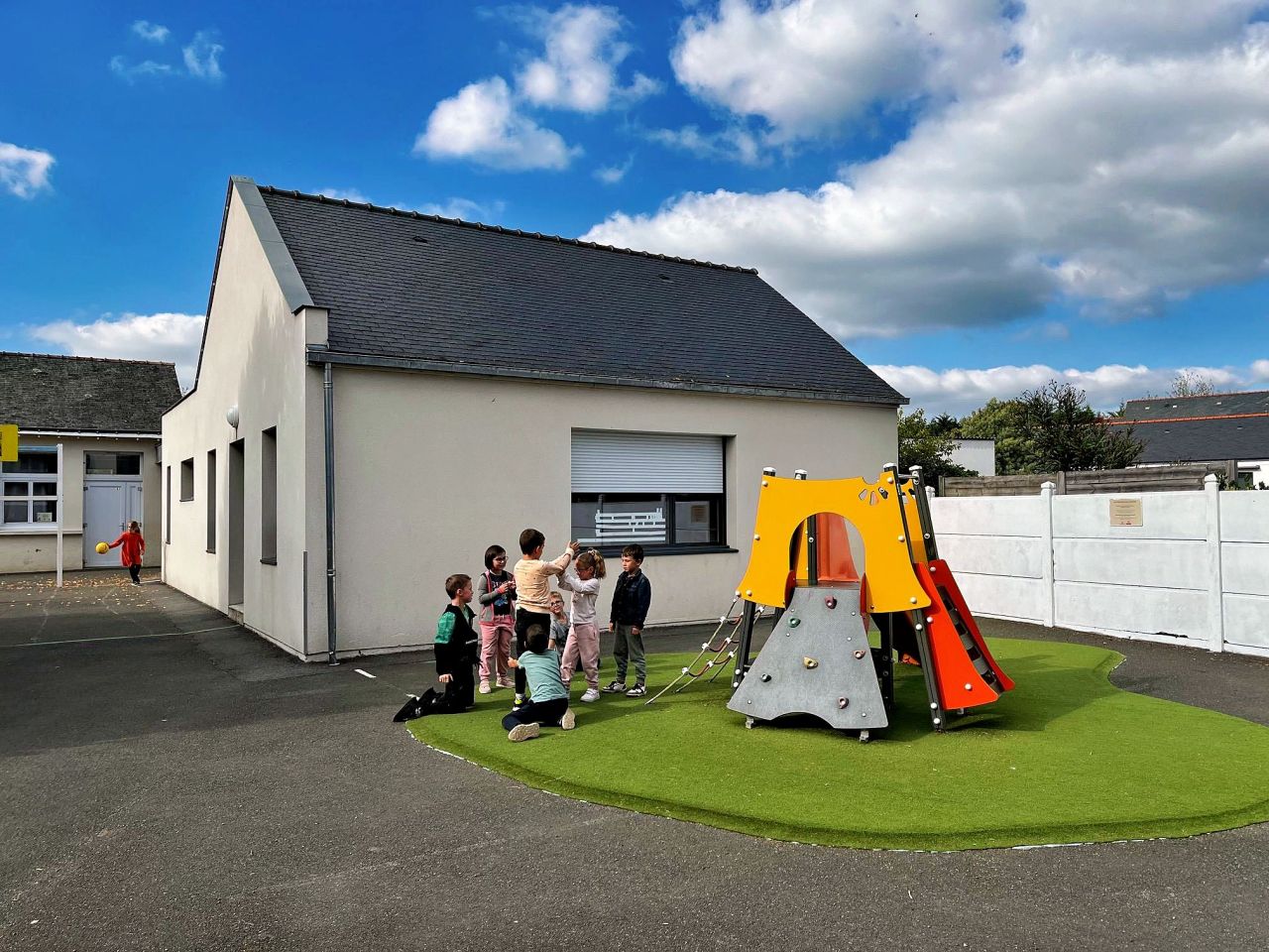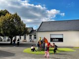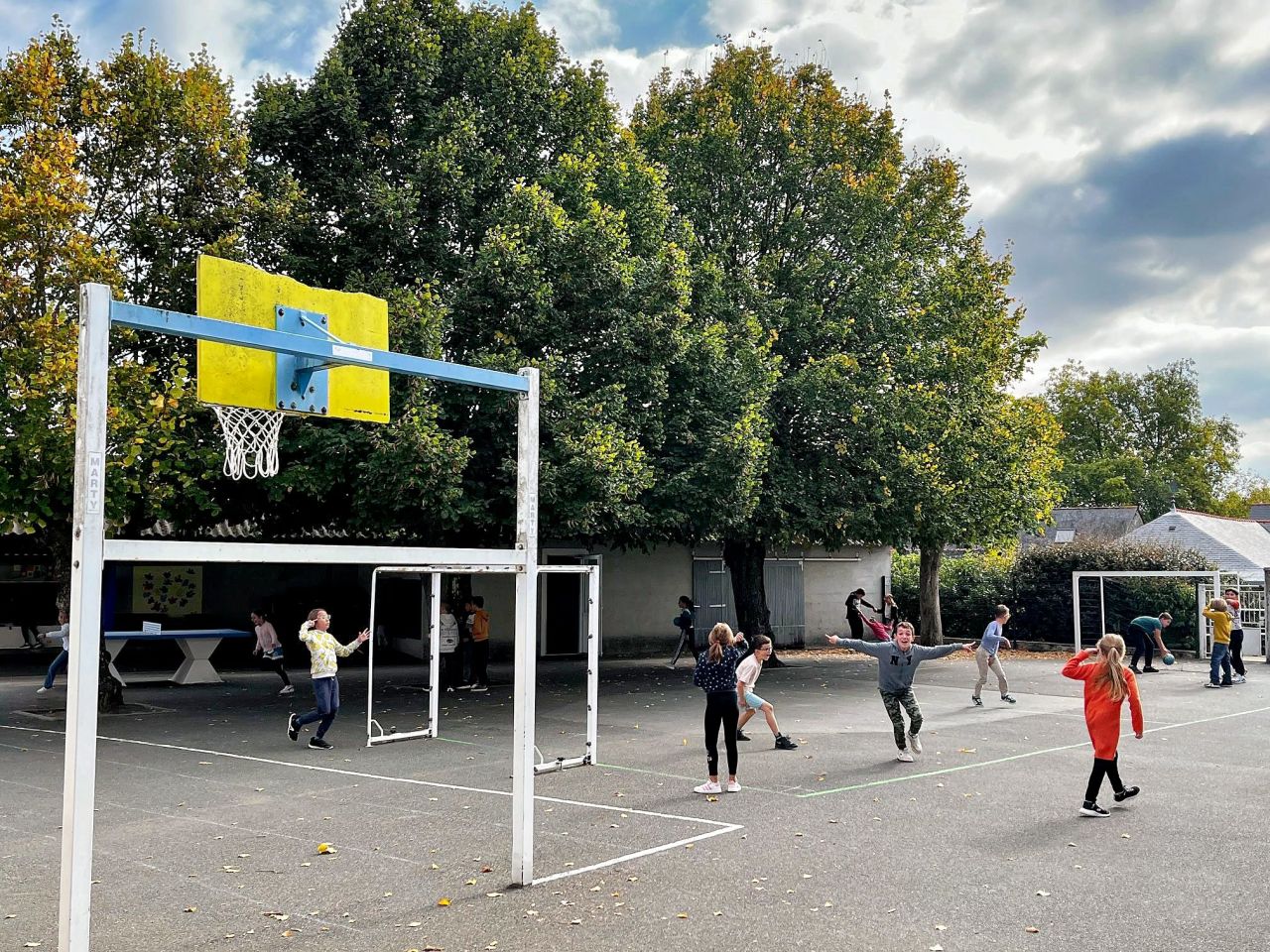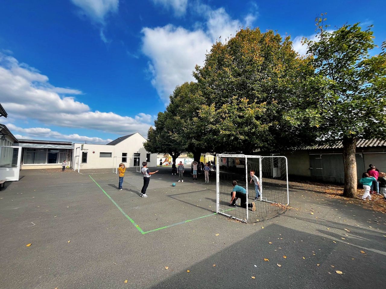 La cour est ombragée et offre des espaces de vie agréables. Les plus jeunes bénéficient d'une structure de jeu rien que pour eux et les plus grands d'un combiné foot/basket.
